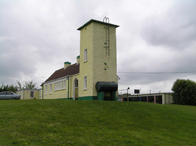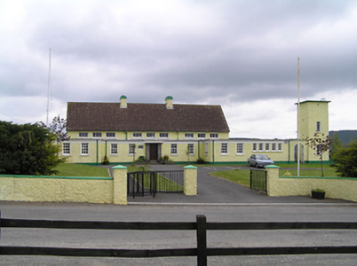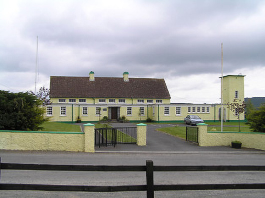 The form of this school is typical of the national schools built from the foundation of the Irish Free State onwards. Clearly architect-designed in form and plan, strong horizontality is expressed by the use of flat roofs and a render eaves course. This is an interesting contrast to the tall water tower. This school retains many of its original features and materials such as the timber sash windows, date plaque, concrete shelters and steel gates.