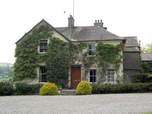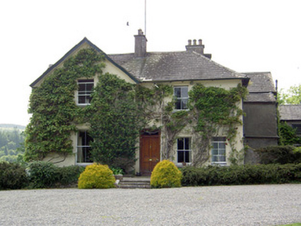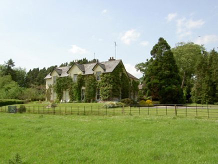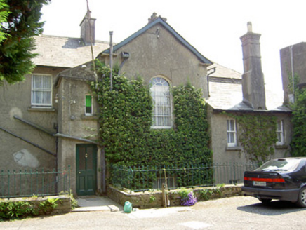 Detached two-storey over basement house, built c.1820, comprising T-plan block having four-bay dormer floor over-three bay ground floor to longer elevation, gable-fronted ends projecting slightly beyond shorter one-bay over-three bay block, latter having central return and flanked by two-storey and one-storey over-basement additions of c. 1870. Entrance in north-east side elevation. Hipped skirt artificial slate roof to main block, pitched to return and lean-to to additions, with rendered chimneystacks, cast-iron rainwater goods and bargeboards. Roughcast rendered to north-west elevation and painted smooth rendered elsewhere. Square-headed window openings throughout with two-over-two pane timber sliding sash windows and tooled limestone sills, dormered to first floor of south-west elevation. Round-headed fixed timber twelve-pane window to first floor of return. Square-headed door opening having timber panelled door with plain overlight and limestone threshold with cast-iron bootscrape. Two-storey outbuilding to north-west with pitched slate roof, rendered chimneys and roughcast rendered walls, having square-headed metal casement and timber sliding sash three-over-six pane windows and timber battened doors and also having elliptical-headed carriage arch with double-leaf timber battened doors. Cast-iron fencing to lawned garden.