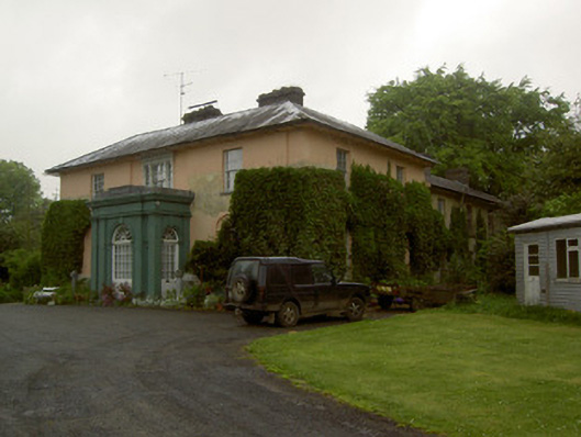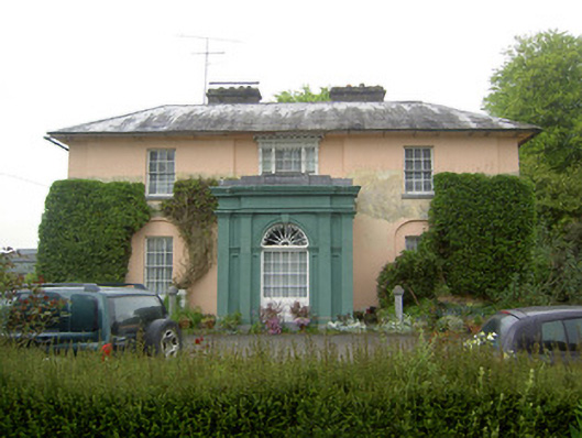 A pleasing middle-sized house of balanced Georgian proportions, existing largely in its early form and retaining much of its original fabric. This house is elevated above other typical contemporary country houses by the undulating projections and recesses of the façade and the later Victorian ornate features including the elaborate entrance porch, theatrical tripartite window, all of which serve to enliven the underlying regular classical form. A sense of grandeur is articulated in the execution of the decorative detailing with fine craftsmanship evident in the timber carving of the tripartite window surround, in the ironwork detailing of the cobweb fanlights and in the cut-stone bellcote and carved limestone entrance piers. The house, its yard and entrance piers form and attractive and interesting group on a slightly elevated site in the landscape.