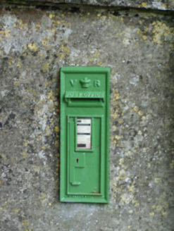 Detached three-bay two-storey gateway, built 1842, with gable-fronted end bays and slightly recessed entrance bay. Crenellations with cut-stone copings to parapet. Coursed rubble sandstone walls with croix pommées to ground floor. Square-headed window openings, now blocked up, with limestone sills and label mouldings. Carved limestone date plaque over window above entrance arch. Tudor-arch archway with cut-stone voussoirs and double-leaf cast-iron gates. Sweeping rubble sandstone walls flanking gatehouse and terminated by roughly dressed sandstone piers having rough crenellations. Post box with crown and royal insignia of Queen Victoria to west sweep wall.