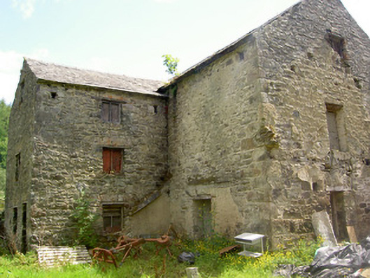 This watermill is a relic of the industrial heritage of the village of Glenbower. The mill race survives to the east of the building which, though now disused, remains largely intact. The outuilding to the south-west once housed horses for the Bianconi coaches, necessary for changeover en route.