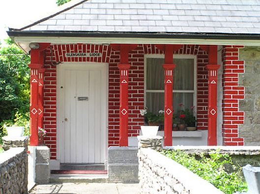 This carefully detailed building was used as a gate lodge to a hunting lodge. The asymmetrical façade, carved timber verandah supports and brick detailing are typical of the influence of the Arts-and-Crafts movement of the late nineteenth century. The painted bricks provide textural contrast to the stone walls, and the timber sliding sash windows provide a patina of age. The sweeping entrance to the hunting lodge over a mile away gives an indication of this building's former function as a gate lodge.