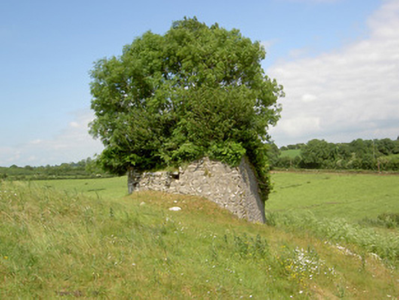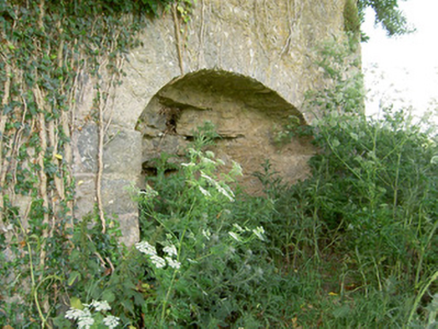 Lime kiln, built c. 1800, with slightly battered random rubble limestone walls having dressed quoins and dressed voussoirs and quoins to segmental-arched opening. Set into sloping ground.