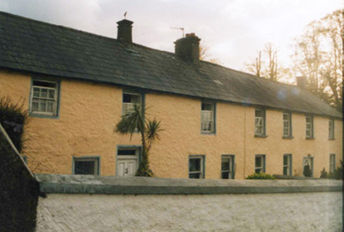 Detached two-storey house, built c.1800, having nine-bay ground floor and seven-bay first floor, with later two-storey outbuilding attached to full length of rear elevation to give overall M-profile roof. Formerly possibly two houses. Pitched slate roof with rendered chimneystacks and cast-iron rainwater goods. Lime-rendered walls with openings highlighted with limewash or painted margins. Timber sash windows throughout, three-over-six pane to first floor and one-over-one pane to ground floor and with two-over-two pane to west gable. Square-headed doorways in front elevation, eastern with timber panelled door with overlight and western with replacement glazed timber door. Attached outbuilding has pitched slate roof with cast-iron rainwater goods and rubble limestone walls. Square-headed timber louvered windows and tall segmental-arched entrance to rear elevation. Two-storey multiple-bay stable-block to north-west with pitched corrugated-iron roof, rendered walls and timber battened windows and half-doors. Yard of single-storey and two-storey outbuildings to rear of house with pitched slate roofs and rubble limestone walls, square-headed and arched openings. Yard entered through metal double-leaf gates from south. Gardens with rendered boundary walls to front, entered through wrought-iron garden gate. Double-leaf cast-iron gates to yard, between rendered piers with decorative caps.