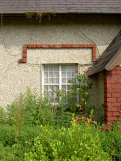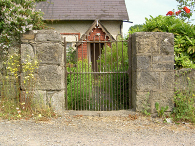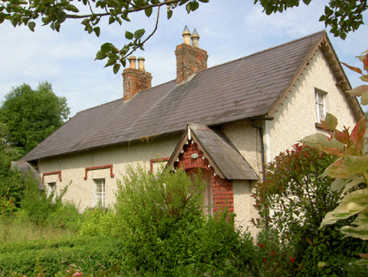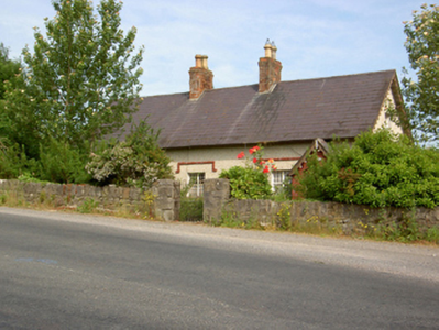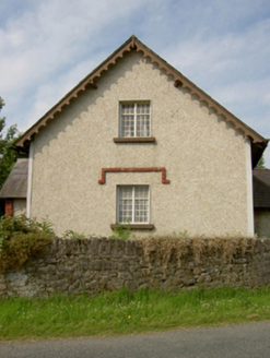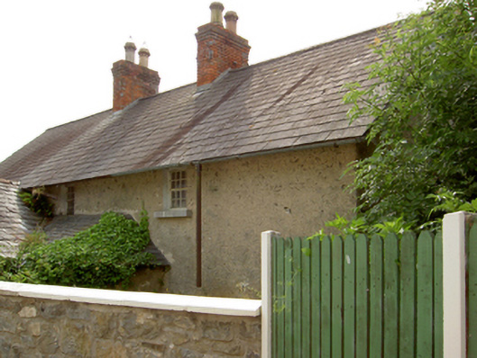 Semi-detached two- or three-bay single-storey worker's house with dormer attic, c.1875, on a rectangular plan with single-bay single-storey gabled projecting open porch. Now disused. One of a pair. Pitched slate roof; pitched (gabled) slate roof (porch), clay ridge tiles, paired red brick Running bond central chimney stacks having corbelled stepped stringcourses below capping supporting terracotta octagonal pots, decorative timber bargeboards to gables on timber purlins, and cast-iron rainwater goods on exposed timber rafters retaining cast-iron downpipes. Lime rendered walls. Square-headed door opening with overgrown threshold, and concealed dressings framing timber boarded door. Square-headed window openings in bipartite arrangement with cut-limestone sills, and concealed dressings with red brick header bond hood mouldings framing pivot fittings having square glazing bars. Square-headed window opening in bipartite arrangement (gable) with cut-limestone sill, and concealed red brick block-and-start surround framing pivot fittings having square glazing bars. Square-headed window opening (north) with cut-limestone sill, and concealed dressings framing pivot fitting having square glazing bars. Set back from line of road on a corner site with piers to perimeter supporting looped wrought iron gate.