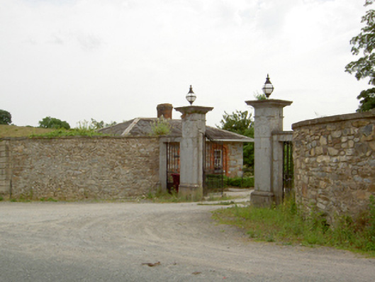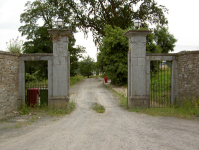 The form and scale of these gates create a dramatic entrance to Knocklofy Demesne. The piers display fine carvings which exhibit the work of skilled craftsmen and which add considerable artistic quality to the appearance of the entrance. The random rubble flanking walls act as a foil to the decorative gateway proper.