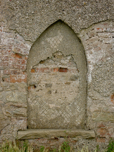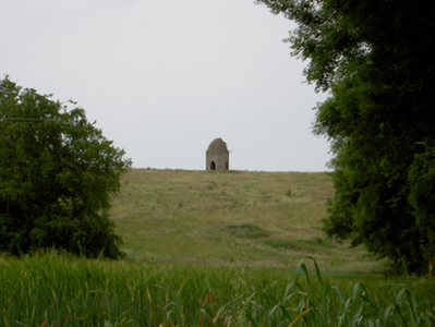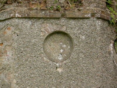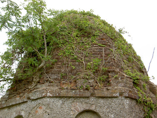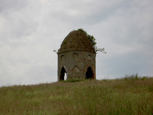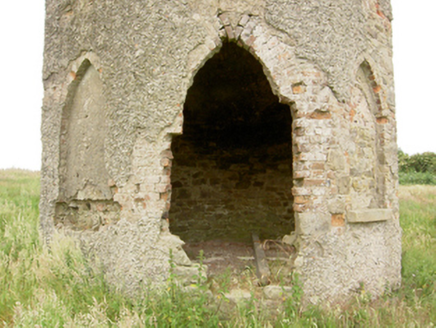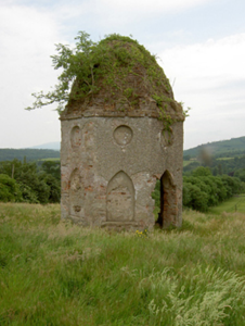 Freestanding single-bay single-stage folly or turret, extant 1832, on an octagonal plan. Creeper- or ivy-covered red brick Flemish bond octagonal dome. Lime rendered or roughcast rubble stone walls with red brick header bond stepped stringcourse supporting red brick chamfered battlements. Pointed-arch door opening below blind oculus with overgrown threshold, and concealed red brick block-and-start surround with no fittings surviving. Pointed-arch blind window openings below blind oculi with cut-granite sills, and concealed red brick block-and-start surrounds framing lime rendered or roughcast infill. Set on an elevated site.