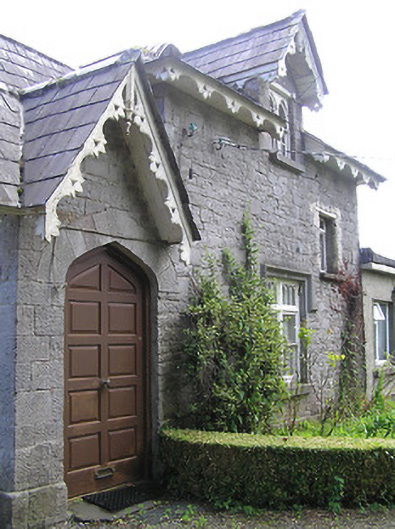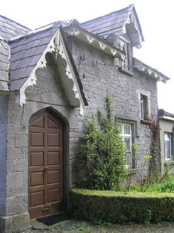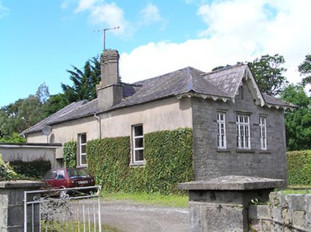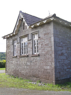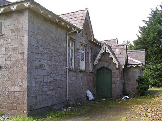 Detached multiple-bay single-storey former school, having two-storey teacher's residence to north end, built c. 1860, with dormered vents to front elevation and dormer windows to front and north elevations of teacher's house. Lower one-bay projection to front elevation, with shallower porch projection to south and recent flat-roofed extension to rear elevation. Now in use as house. Slate roofs, hipped to school and teacher's residence, hipped and with vent gablet to projection and having gablets to dormers and entrance to teacher's residence, and to triangular-headed vents in front elevation of school and to centre of projection, with ornately-carved timber valences to overhanging eaves of all elevations except rear, and similarly-detailed bargeboards with carved inverted finials to all gablets and dormers. Rendered triple-offset chimneystacks. Snecked roughly-dressed limestone walls with cut-stone quoins and dressed plinth to all except rendered rear elevation and extension. Square-headed window openings with cut limestone sills, windows of south and front elevations having carved limestone label-mouldings and sills, continuous to groups of windows to south elevation and south end of front elevation, these groups comprising triple sliding sash windows flanked by double sash windows, all mullioned-and-transomed four-over-four pane and having pointed arch glazing to upper sashes and to pivoting toplights. Similar triple sash window to projection, square-headed four-pane timber casement window set in blind Tudor-arch recess to west elevation of teacher's residence and double timber sliding sash one-over-one pane window with pointed glazing to toplight to south elevation Tudor-arch door openings to school porch and to entrance of teacher's residence, with cut limestone voussoirs, timber panelled doors, being replacement to latter entrance. Double timber sliding sash two-over-four pane windows to dormer of teacher's residence, upper lifts having pointed glazing. Replacement uPVC and timber windows to rear elevation, extension and some to west front elevation of teacher's residence. Rubble limestone walls and square-profile piers to site boundary, with metal gate.
