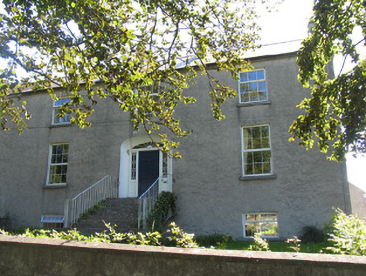 Semi-detached three-bay two-storey over basement house, built c.1815 as one of pair with adjoining house to north. Pitched artificial slate roof with rendered chimneystacks. Lime-rendered walls. All windows replacement uPVC, with limestone sills. Recessed doorway having timber doorcase, wide spoked fanlight, geometric-pane side-lights and timber panelled door with flight of limestone steps. Rendered stone outbuilding to rear. Rendered wall with pedestrian gateway to front.