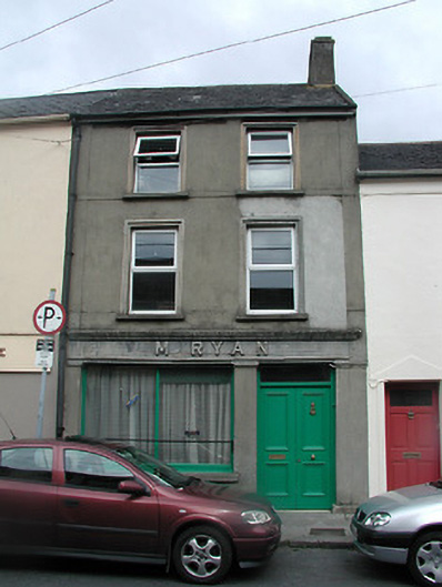 Terraced two-bay three-storey house, built c.1870. Pitched slate roof with rendered chimneystack. Rendered walls with render plat band at second storey level. Replacement uPVC windows with moulded render surrounds. Shopfront comprises render pilasters supporting render fascia and moulded cornice, vertically-divided timber-framed plate glass windows and timber panelled double-leaf door with overlight.