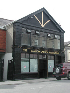 End-of-terrace gable-fronted multiple-bay two-storey former shop, built c.1915. Pitched artificial slate roof with brick chimneystacks and timber bargeboards. Brick walling to north elevation. Rendered walls with decorative render to upper gable and having channelled render piers with fluting detail to tops to each end of facade and having decorative moulded cornice between floors also forming top of shopfront. Fixed and timber casement windows. Shopfront comprising carved timber pilasters flanking timber panelled double-leaf central door, with similar door at end of facade leading to upper floor, and with simple fascia below cornice.