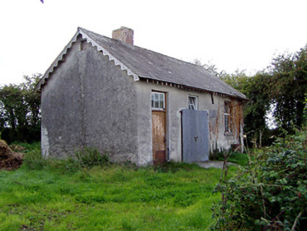 Detached three-bay single-storey school, built 1890. Now disused. Pitched slate roof with brick chimneystack and decorative timber bargeboards. Roughcast rendered walls having limestone name and date plaque. Square-headed openings having six-over-nine pane timber casement windows and limestone sills. Timber battened door with six-pane overlight set in square-headed opening.