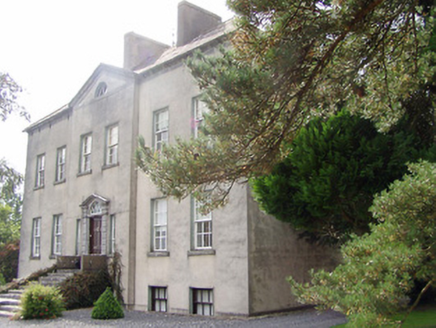 Detached six-bay two-storey country house over basement, built c.1730, with two-bay pedimented central breakfront. Hipped slate roof with rendered chimneystacks and carved limestone eaves course. Roughcast rendered walls. Timber sliding sash windows, six-over-six pane to ground and first floors and three-over-three pane to basement, with cut limestone sills set in square-headed openings. Lunette window to pediment. Timber panelled door with traceried fanlight and timber sash sidelights, having channelled limestone surround and open-bed pediment. Flight of carved limestone steps leading to entrance.