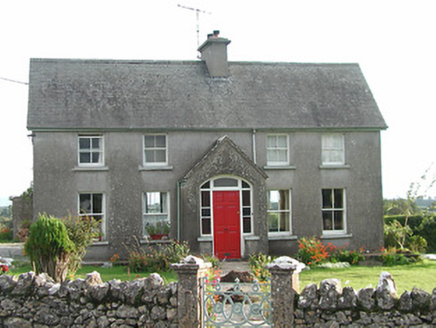 This house occupies a prominent site just outside Cloghjordan, visible from a distance from both approaches. Its impressive form and scale is enhanced by the retention of features such as timber sash windows, slate roof and gabled porch. The pleasing cast-iron gate and unusual drystone walls add interest to the site.