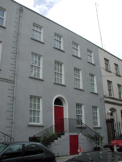 Terraced four-bay three-storey over part-raised basement house, c.1790. Extensively renovated and extended, c.1990, comprising single-bay three-storey over part-raised basement flat-roofed return to south-west. Pitched roof behind parapet with replacement artificial slate, c.1990, concrete ridge tiles, rendered chimney stacks and cast-iron rainwater goods. Flat bitumen felt roof to return with timber eaves. Painted replacement cement rendered walls, c.1990. Square-headed window openings with rendered sills. Replacement 3/6 and 6/6 timber sash windows, c.1990. Round-headed door opening approached by flight of steps with moulded rendered surround, replacement timber panelled door, c.1990, and overlight. Road fronted with concrete footpath to front.