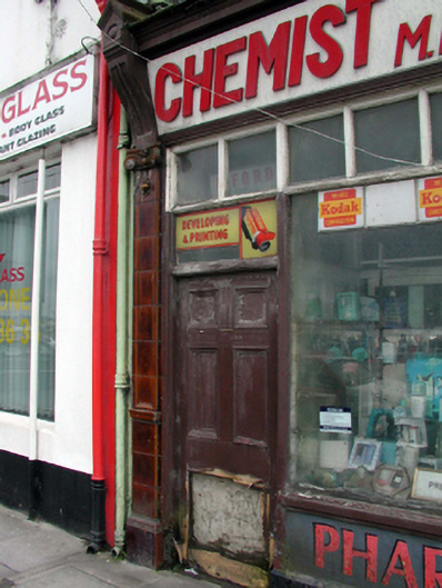 Terraced two-bay three-storey house, c.1825, retaining early fenestration. Renovated, c.1900, with shopfront inserted to ground floor. Now disused. Pitched slate roof with clay ridge tiles, rendered chimney stack, rendered coping, and cast-iron rainwater goods. Painted rendered, ruled and lined walls. Square-headed window openings with stone sills, and moulded rendered surrounds to first floor. 1/1 timber sash windows. Timber shopfront, c.1900, to ground floor with tiled Ionic pilasters, fixed-pane timber display window, timber panelled doors with overlights, and timber fascia with decorative consoles and moulded cornice. Road fronted with concrete footpath to front.