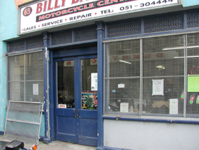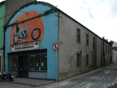 Terraced single-bay double-height barrel roof-fronted building, c.1920, on a corner site with shopfront to ground floor and seven-bay two-storey side elevation to south-west. Barrel roof with corrugated-iron, decorative timber bargeboards, and cast-iron rainwater goods. Painted rendered wall to front (north-east) elevation with moulded rendered stringcourse. Unpainted rendered walls to remainder. Square-headed window openings with concrete sills and rendered surrounds. 6/6 timber sash windows (possibly replacement, c.1995). Timber shopfront with fixed-pane display windows and glazed timber panelled double doors with overlights. Road fronted on a corner site with concrete footpath to front.
