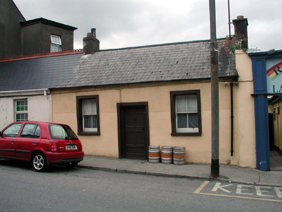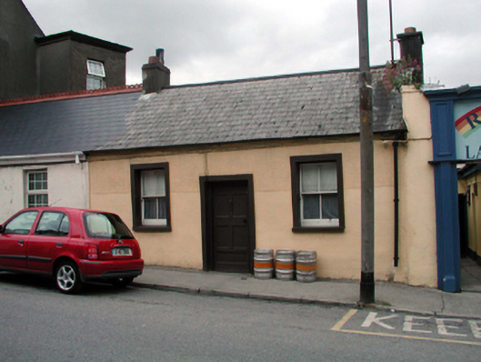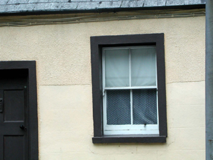 Terraced three-bay single-storey house, c.1840, retaining original fenestration. Reroofed, c.1965. One of a pair. Pitched roof with replacement artificial slate, c.1965, concrete ridge tiles, rendered chimney stacks, and cast-iron rainwater goods on rendered eaves. Painted rendered, ruled and lined walls with painted roughcast section. Square-headed window openings with stone sills and rendered surrounds. 2/2 timber sash windows. Square-headed door opening with rendered surround and timber panelled door. Road fronted with concrete footpath to front.