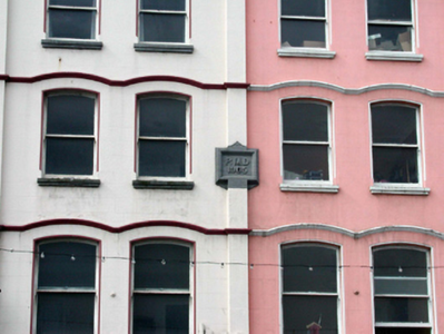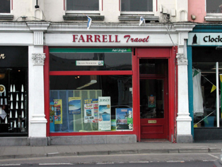 Terraced two-bay four-storey building, built 1905, retaining original fenestration with shopfront to ground floor. Renovated, c.1980, to ground floor. One of a terrace of four. Pitched (shared) slate roof with clay ridge tiles, rendered chimney stack, and cast-iron rainwater goods on moulded rendered eaves. Painted rendered, ruled and lined walls with rendered pilasters to each floor, and moulded rendered cornice to eaves. Shared cut-stone date stone/plaque to second floor. Shallow segmental-headed window openings with rendered sills and continuous hood mouldings over. 1/1 timber sash windows. Rendered shopfront to ground floor with Corinthian pilasters, 1980, overlight, and timber fascia over with rendered consoles and moulded rendered cornice. Road fronted with concrete flagged footpath to front.