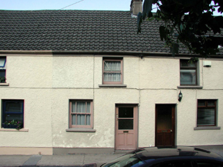 Terraced two-bay two-storey house, c.1890, retaining original fenestration. Reroofed, c.1965. One of a terrace of six. Pitched (shared) roof with replacement profiled clay tiles, c.1965, concrete ridge tiles, rendered (shared) chimney stack, and cast-iron rainwater goods on rendered eaves. Painted roughcast walls. Square-headed window openings with stone sills, and 1/1 timber sash windows (having margins to ground floor). Square-headed door opening with replacement glazed timber panelled door, c.1965. Road fronted with concrete footpath to front.