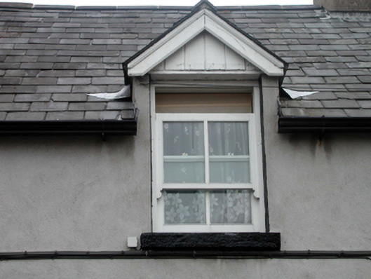 Terraced single-bay single-storey local authority house with half-dormer attic, built 1898. Renovated and refenestrated, c.2000. One of a terrace of five. Pitched (shared) slate roof (gabled to half-dormer attic window) with clay ridge tiles, red brick (shared) chimney stack, timber bargeboards, and replacement uPVC rainwater goods, c.2000, on timber eaves. Painted rendered walls. Square-headed window openings (in bipartite arrangement to ground floor) with rendered sills. Replacement 2/2 timber sash windows, c.2000. Square-headed door opening with replacement tongue-and-groove timber panelled door, c.2000. Road fronted with concrete footpath to front.