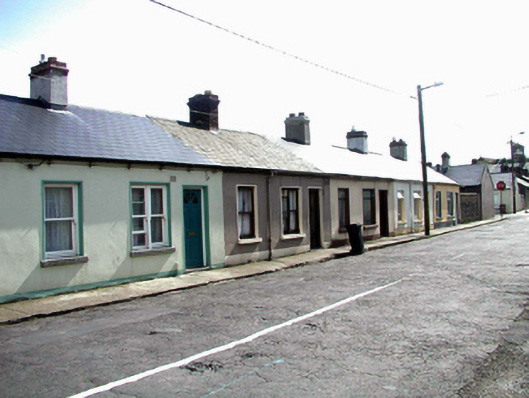 Terraced three-bay single-storey local authority house, built 1900, retaining original fenestration. Reroofed, c.1975. One of a terrace of five. Pitched (shared) roof with replacement artificial slate, c.1975, clay ridge tiles, red brick chimney stack, and cast-iron rainwater goods on rendered eaves. Painted rendered walls. Square-headed window openings (one in bipartite arrangement) with stone sills. 1/1 and 2/2 timber sash windows. Square-headed door opening with replacement glazed timber door, c.1975. Road fronted with concrete footpath to front.