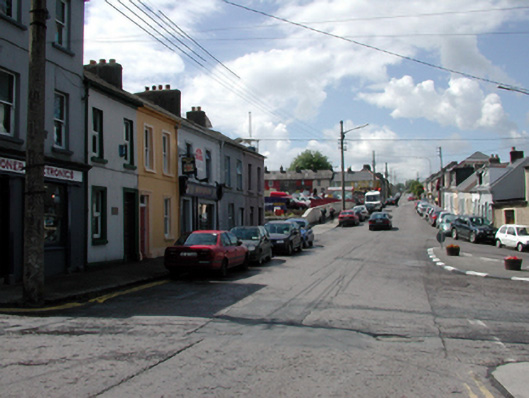 Terraced two-bay two-storey house, c.1885. Extensively renovated, c.2000. One of a terrace of five. Pitched (shared) slate roof with clay ridge tiles, rendered chimney stacks, and cast-iron rainwater goods on rendered eaves. Painted roughcast walls. Square-headed window openings with stone sills. Replacement timber casement windows, c.2000. Square-headed door opening with replacement glazed uPVC panelled door, c.2000. Road fronted with concrete footpath to front.