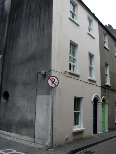 End-of-terrace two-bay three-storey house, c.1860, retaining original fenestration. One of a pair. Pitched (shared) slate roof with clay ridge tiles, rendered chimney stacks, and cast-iron rainwater goods on rendered eaves. Painted rendered, ruled and lined wall to front (south-east) elevation. Unpainted rendered walls to remainder. Square-headed window openings with stone sills, and 2/2 timber sash windows. Round-headed door opening with moulded rendered surround. Replacement timber panelled door, c.1985, with overlight. Road fronted with concrete brick cobbled footpath to front.