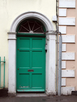 Terraced three-bay four-storey house, c.1790. Extensively renovated, c.1990, to accommodate use as apartments. Pitched slate roof with clay ridge tiles, rendered chimney stacks, and cast-iron rainwater goods on rendered eaves. Painted rendered walls with rendered quoins to corner. Square-headed window openings with stone sills. Replacement uPVC casement windows, c.1990. Round-headed door opening with moulded rendered surround, timber panelled door and decorative fanlight. Road fronted with sections of wrought iron railings and concrete brick cobbled footpath to front.
