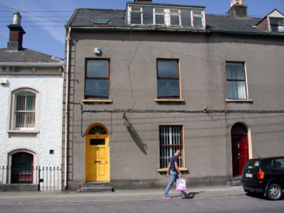 Terraced two-bay two-storey house with dormer attic, c.1835. Renovated, c.1960, with dormer attic remodelled. Refenestrated, c.1985. Now in use as offices. One of a terrace of four. Pitched (shared) slate roof with clay ridge tiles, rendered (shared) chimney stacks, rendered coping, flat roof, c.1960, to dormer attic window, square rooflight, and cast-iron rainwater goods. Unpainted rendered, ruled and lined walls. Square-headed window openings with stone sills. Replacement timber casement windows, c.1985, with timber casement windows, c.1960, to dormer attic. Round-headed door opening with two cut-limestone steps, replacement glazed timber panelled door, c.1985, and spoked fanlight. Road fronted with concrete footpath to front.