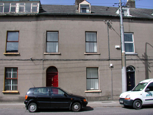 Terraced two-bay two-storey house with dormer attic, c.1835. Renovated, c.1960, with dormer attic remodelled. Refenestrated, c.1985. One of a terrace of four. Pitched (shared) slate roof (gabled, c.1960, to dormer attic window) with clay ridge tiles, rendered (shared) chimney stacks, and cast-iron rainwater goods. Unpainted rendered, ruled and lined walls. Square-headed window openings with stone sills. Replacement aluminium casement windows, c.1985. Round-headed door opening with two cut-limestone steps, replacement timber panelled door, c.1985, and spoked fanlight. Road fronted with concrete footpath to front.