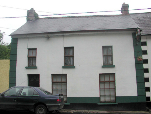 Attached three-bay two-storey house, c.1840. Extensively renovated, c.1990, with some openings remodelled to ground floor. Pitched roof with replacement artificial slate, c.1990, decorative red clay ridge tiles, red brick Running bond chimney stacks, and cast-iron rainwater goods on render eaves. Painted rendered, ruled and lined wall to front (south-east) elevation (possibly replacement, c.1990) with rendered channelled piers. Painted roughcast wall to rear (north-west) elevation with roughcast buttress. Square-headed window openings (remodelled, c.1990, to ground floor) with rendered sills (replacement concrete sills, c.1990, to ground floor). Replacement timber casement windows, c.1990. Square-headed door opening with replacement glazed timber panelled door, c.1990. Road fronted.