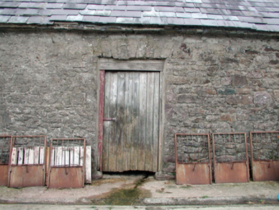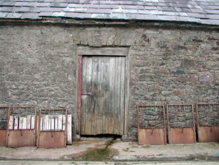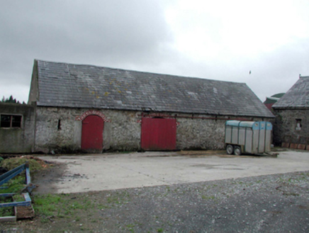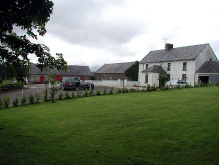 Detached four-bay two-storey farmhouse, c.1920, possibly incorporating fabric of earlier house, c.1870, with single-bay single-storey projecting porch. Refenestrated, c.1970. Part refenestrated, c.1995. Pitched slate roof (hipped to porch) with clay ridge tiles, red brick Running bond chimney stack, rendered coping, and cast-iron rainwater goods. Painted rendered walls. Square-headed window openings with stone sills. Replacement timber casement windows, c.1970, to front (south-east) elevation. Replacement uPVC casement windows, c.1995, to rear (north-west) elevation. Square-headed door opening with replacement tongue-and-groove timber panelled door, c.1970. Set back from road in own grounds with courtyard to south-east. (ii) Attached single-bay single-storey outbuilding, c.1920, to north-east. Renovated, c.1970, with opening remodelled to accommodate use as garage. Pitched slate roof with clay ridge tiles, rendered coping, and cast-iron rainwater goods. Painted rendered walls. Square-headed carriageway remodelled, c.1970, with no fittings. (iii) Detached three-bay single-storey rubble stone outbuilding, c.1870, to west. Pitched slate roof with clay ridge tiles, and no rainwater goods on squared rubble stone eaves. Random rubble stone walls with lime mortar. Square-headed window opening with timber lintel, and timber fittings. Square-headed door openings with timber lintels, and timber boarded doors and half doors. (iv) Detached three-bay single-storey rubble stone outbuilding, c.1870, to south-west with pair of segmental-headed carriageways. Pitched slate roof with clay ridge tiles, and no rainwater goods. Random rubble stone walls with lime mortar. Square-headed slit-style window openings. Fittings not visible. Segmental-headed door opening with red brick ‘voussoirs’, and corrugated-iron door. Pair of segmental-headed carriageways with red brick ‘voussoirs’, and corrugated-ion sliding doors.