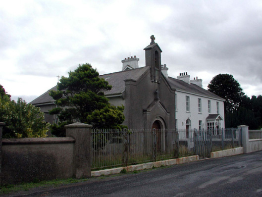 Detached five-bay two-storey over basement house with dormer attic, c.1810. Converted to use as convent, 1883. Extended, 1934, comprising three-bay double-height single-cell chapel to north-west with single-bay single-storey gabled advanced porch to south-west, single-bay double-height bowed apse to north-east, and single-bay single-storey linking bay to south-east. Renovated, c.1985, with single-bay single-storey gabled projecting porch added to original block. Closed, 1999. Refenestrated, post-1999. Now disused. Pitched slate roof with clay ridge tiles, rendered chimney stacks, square rooflights, and cast-iron rainwater goods on timber eaves. Pitched slate roofs to chapel (half-conical to apse) with clay ridge tiles having iron cross finial to apex, and cast-iron rainwater goods on timber eaves. Painted rendered walls to original block. Unpainted roughcast walls to chapel with cut-stone date stone/plaque, and concrete coping extending into gabled bellcote to apex on profiled dentilated apron having concrete coping with cross finial to apex. Square-headed window openings to original block (some round-headed openings to rear (north-west) elevation) with stone sills. Replacement uPVC casement windows, post-1999. Round-headed door opening with two cut-granite steps, timber doorcase, timber panelled double doors, and overlight. Square-headed door opening to additional porch with two cut-granite steps, glazed timber panelled double doors (salvaged from original door opening), overlight, and square-headed flanking window openings having concrete sills, and replacement fixed-pane uPVC lights, post-1999. Round-headed window openings to chapel with concrete sills, rendered panel surrounds, and fixed-pane steel windows having casement section. Round-headed door opening to chapel in round-headed recess with timber panelled double doors, and overpanel. Set back from line of road in own grounds with painted rendered boundary wall to original block having rendered piers, wrought iron double gates, sections of wrought iron flanking railings, and sections of wrought iron railings, 1934, to chapel having double gates, and unpainted roughcast boundary wall to remainder of site with unpainted rendered panelled piers, and replacement sheet metal gates, c.1985.