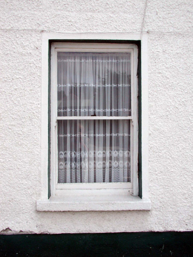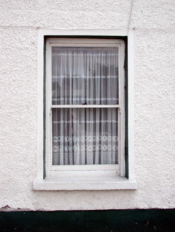 Terraced two-bay two-storey mill worker’s cottage, c.1860, retaining early fenestration with three-bay single-storey return to south-east. Reroofed, c.1985. One of a terrace of forty-eight. Shallow segmental barrel roof (shared) with replacement felt, c.1985, rendered chimney stacks, and concealed rainwater goods in replacement overhanging timber eaves, c.1985. Painted roughcast walls over rubble sandstone construction with rendered strips to ends, and band to eaves. Square-headed window openings with cut-granite sills, and 1/1 timber sash windows. Square-headed door opening with replacement glazed timber panelled door, c.1985, and overlight. Road fronted with concrete footpath to front.