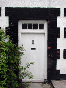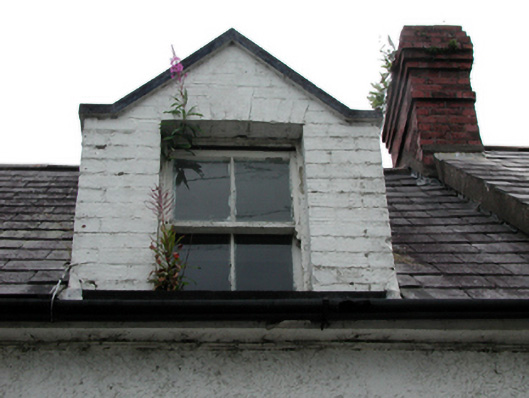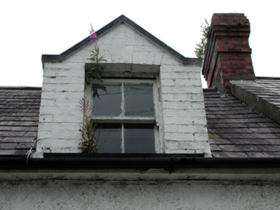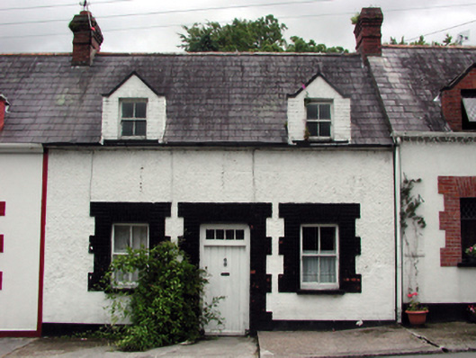 Terraced three-bay single-storey house with dormer attic, c.1870, retaining original aspect. One of a terrace of four. Pitched (shared) slate roof (gabled to dormer attic windows) with red clay ridge tiles, red brick Running bond chimney stacks, and cast-iron rainwater goods on rendered eaves. Painted roughcast walls. Square-headed window openings with stone sills, and painted red brick block-and-start surrounds (plain surrounds to dormer attic having rendered coping). 2/2 timber sash windows. Square-headed door opening with painted red brick block-and-start surround, tongue-and-groove timber panelled door, and overlight. Road fronted with concrete footpath to front.