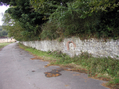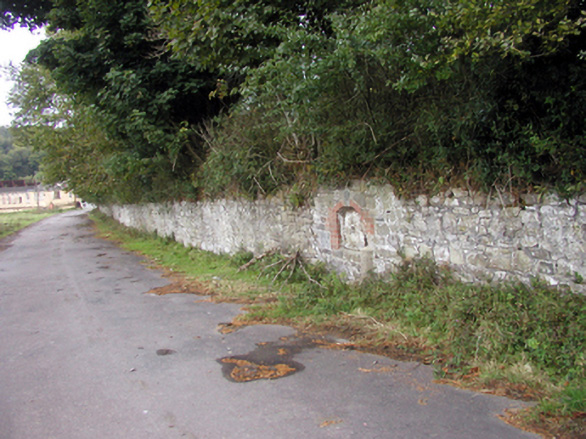 Section of random rubble stone retaining wall, c.1840, with lime mortar, and segmental-headed opening with red brick surround having tooled limestone keystone, and cast-iron door. Set back from road in grounds shared with Portlaw Cotton Factory.