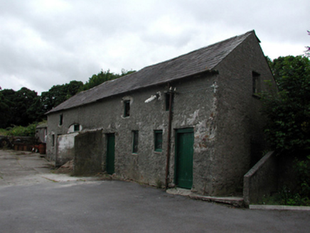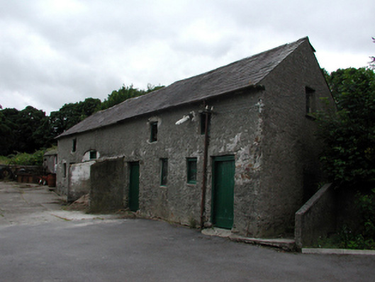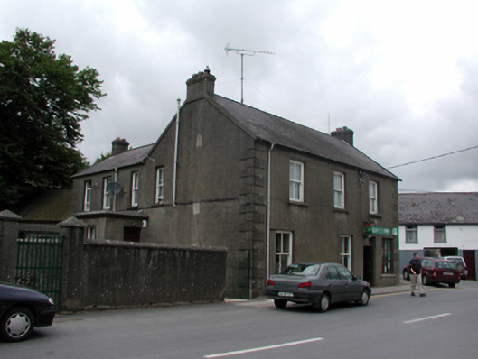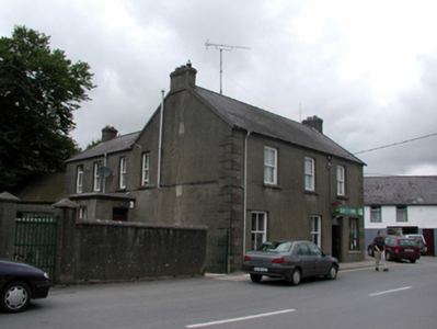 Detached three-bay two-storey house, c.1890, on an L-shaped plan on a corner site retaining most original fenestration with three-bay two-storey return to west having single-bay single-storey flat-roofed projecting porch. Part refenestrated, c.1990, to accommodate part commercial use to ground floor. Pitched slate roofs on an L-shaped plan with clay ridge tiles, rendered chimney stacks, rendered coping, and replacement uPVC rainwater goods, c.1990, retaining original cast-iron downpipes. Flat roof to porch not visible behind blocking course. Unpainted rendered, ruled and lined walls with rendered vermiculated quoins to corners, and moulded cornice to blocking course to porch. Square-headed window openings with stone sills. 2/2 timber sash windows with replacement fixed-pane timber window, c.1990, to ground floor. Square-headed door opening with replacement timber panelled double doors, c.1990, having overlight. Square-headed door opening to porch with timber panelled door, and overlight. Road fronted on a corner site with concrete footpath to front. (ii) Detached five-bay single-storey outbuilding with half-attic, c.1890, to south-west retaining early fenestration, and originally with elliptical-headed carriageway. Renovated, c.1940, with carriageway remodelled. Pitched slate roof with clay ridge tiles, rendered coping, and cast-iron rainwater goods. Unpainted rendered walls over random rubble stone construction. Square-headed window openings with stone sills. Timber casement and fixed-pane timber windows. Square-headed door openings (one inserted, c.1940, to former carriageway) with timber lintels, and timber boarded doors.