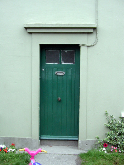Semi-detached three-bay two-storey local authority house, c.1930, retaining original aspect. One of a pair. Pitched (shared) artificial slate roof with clay ridge tiles, rendered chimney stacks, rendered coping, and cast-iron rainwater goods on rendered eaves. Painted rendered walls. Square-headed window openings with concrete sills, and 6/6 timber sash windows. Square-headed door opening with rendered surround having moulded entablature over, and glazed tongue-and-groove timber panelled door. Set back from road in own grounds with forecourt having unpainted rendered boundary wall with wrought iron gate.