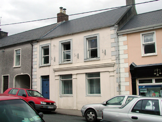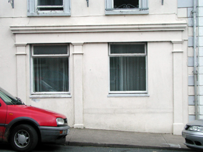 Terraced three-bay two-storey house, c.1870, retaining original fenestration with shopfront to ground floor. Renovated, c.1970, with openings remodelled to ground floor to accommodate. Reroofed, c.1995. Now entirely in residential use. Pitched roof with replacement artificial slate, c.1990, clay ridge tiles, rendered chimney stack, rendered coping, and cast-iron rainwater goods on rendered eaves. Painted rendered walls with rendered quoined piers. Rendered shopfront to ground floor with pilasters having moulded necking, and fascia over having moulded cornice. Square-headed window openings (remodelled, c.1970, to ground floor) with rendered sills (replacement concrete sills, c.1970, to remodelled openings), and moulded rendered surrounds to first floor. 1/1 timber sash windows with replacement timber casement windows, c.1970, to remodelled openings. Square-headed door opening with replacement timber panelled door, c.1970, having overlight. Road fronted with concrete footpath to front.