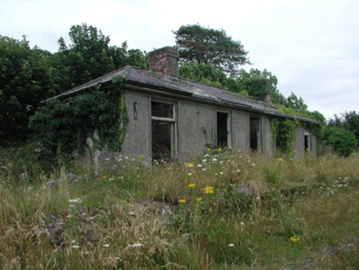 Detached five-bay single-storey railway station, opened 1878. Closed, 1982. Now derelict. Hipped slate roof with clay ridge tiles, rendered chimney stacks over ed brick irregular bond construction, and remains of cast-iron rainwater goods on timber eaves. Unpainted rendered walls with rendered band to eaves. Square-headed window openings with rendered sills, rendered surrounds, and remains of timber fittings. Square-headed door openings with remains of timber fittings including overlights. Interior now derelict with red brick-lined fireplace. Set back from road in own grounds with overgrown grounds to site, and remains of retaining wall along front (south-west) elevation originally forming platform.