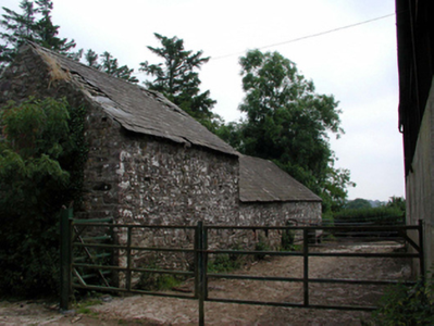Detached two-bay single-storey rubble stone outbuilding, c.1880, with three-bay single-storey end block with dormer attic to north. Pitched slate roofs with clay ridge tiles, and fragments of cast-iron rainwater goods on exposed timber eaves. Random rubble stone walls. Square-headed window openings (slit-style to rear (west) elevation) with no sills, and red brick surrounds. Fittings now gone. Square-headed door openings (including to first floor to side (north) elevation) with one having red brick surrounds. Timber boarded doors with some replacement steel-sheeted doors, c.1980. Set back from road in shared grounds with forecourt to east, and random rubble stone boundary wall to perimeter of site having hoop iron gate.