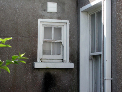 Detached two-bay two-storey house, c.1840, originally end-of-terrace retaining some original fenestration. Extensively renovated, c.1965, with single-bay single-storey flat-roofed projecting porch added. Hipped and pitched roof (originally shared) with replacement artificial slate, c.1965, concrete ridge tiles, rendered chimney stack, concrete coping, and replacement uPVC rainwater goods, c.1990, on timber eaves. Flat concrete roof to porch. Unpainted rendered walls. Square-headed window openings with concrete sills. 2/2 timber sash windows to rear (north-east) elevation with replacement timber casement windows, c.1965, to remainder. Square-headed door opening with replacement glazed timber panelled door, c.1965. Set back from line of road in own grounds with rendered boundary wall to perimeter.