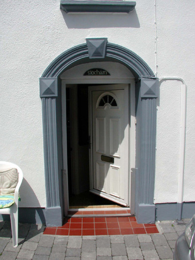 Terraced four-bay two-storey house, c.1820. Reroofed, c.1970. Refenestrated, c.1995. Pitched roof with replacement fibre-cement slate, c.1970, clay ridge tiles, and replacement uPVC rainwater goods, c.1995, on rendered eaves. Painted rendered walls with rendered quoined piers. Square-headed window openings with moulded rendered sills, and replacement uPVC casement windows, c.1995. Segmental-headed door opening with moulded rendered surround having keystone, and replacement glazed uPVC panelled door, c.1995. Road fronted with concrete brick cobbled footpath to front.