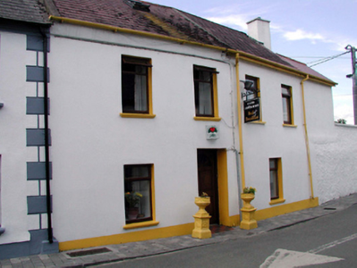 End-of-terrace four-bay two-storey house with dormer attic, c.1810, originally two separate two-bay two-storey houses. Extensively renovated and amalgamated, c.1985, with dormer attic added. Extended, pre-1999, comprising single-bay two-storey end bay to north-east. Now in use as guesthouse. Pitched roof with replacement red fibre-cement slate, c.1985, red clay ridge tiles, rendered chimney stacks, rendered coping (including to original party wall), replacement square rooflight, c.1985, and replacement uPVC rainwater goods, pre-1999, on timber eaves. Painted rendered walls. Square-headed window openings with replacement concrete sills, c.1985, and replacement timber casement windows, c.1985. Square-headed door opening with replacement glazed timber panelled door, c.1985. Road fronted with yard to north-east having roughcast boundary wall, and concrete brick cobbled footpath to front.
