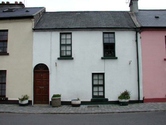 Terraced two-bay two-storey house, c.1840. Refenestrated, c.1990. Pitched slate roof with clay ridge tiles, rendered coping, and cast-iron rainwater goods on rendered eaves. Painted rendered walls. Square-headed window openings with stone sills, and replacement timber casement windows, c.1990. Round-headed door opening with replacement timber panelled door, c.1990, having spoked fanlight. Road fronted with concrete brick cobbled footpath to front.