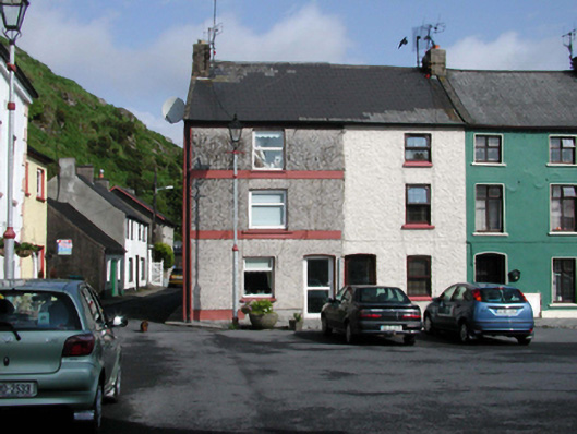 Terraced single-bay three-storey house, c.1850. Reroofed and refenestrated, pre-1999. One of a pair. Pitched (shared) roof with replacement artificial slate, pre-1999, concrete ridge tiles, rendered chimney stack, rendered coping, and replacement uPVC rainwater goods, pre-1999. Painted roughcast walls (possibly replacement, pre-1999). Square-headed window openings with rendered sills, and replacement uPVC casement windows, pre-1999. Shallow segmental-headed door opening with replacement glazed uPVC door, pre-1999. Road fronted with concrete brick cobbled footpath to front.