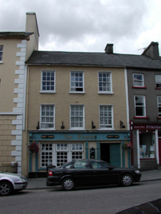 Terraced three-bay two-storey house, c.1770, retaining most original fenestration. Reroofed and part refenestrated, c.1970. Renovated, c.1995, with replacement pubfront inserted to ground floor. Pitched (shared) roof with replacement artificial slate, c.1970, clay ridge tiles, rendered (shared) chimney stack, and cast-iron rainwater goods on rendered eaves. Painted roughcast walls. Square-headed window openings with stone sills. 6/6 timber sash windows with 8/8 timber sash windows to rear (north-west) elevation having some replacement timber casement windows, c.1970. Replacement timber pubfront, c.1995, to ground floor with panelled pilasters, timber casement windows, timber panelled double doors having timber fascia over with consoles, and moulded cornice. Road fronted with concrete brick cobbled footpath to front.