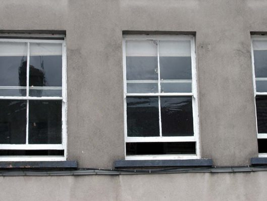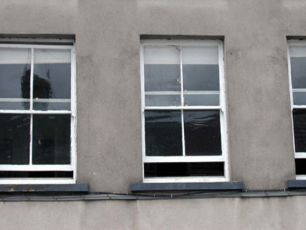 Terraced three-bay three-storey house, c.1830, retaining original fenestration. Renovated, pre-1999, with window opening remodelled to right ground floor to accommodate use as offices. Pitched slate roof with clay ridge tiles, rendered (shared) chimney stacks, and cast-iron rainwater goods on rendered eaves. Unpainted rendered walls. Square-headed window openings (one remodelled, pre-1999, to right ground floor to accommodate use as square-headed door opening) with stone sills, and 2/2 timber sash windows. Shallow segmental-headed door opening with timber panelled door, and overlight. Timber panelled door, pre-1999, to remodelled opening with overlight. Road fronted with concrete brick cobbled footpath to front.