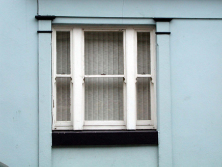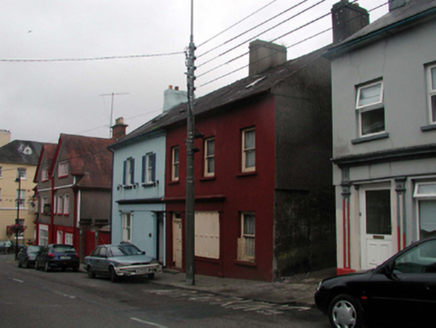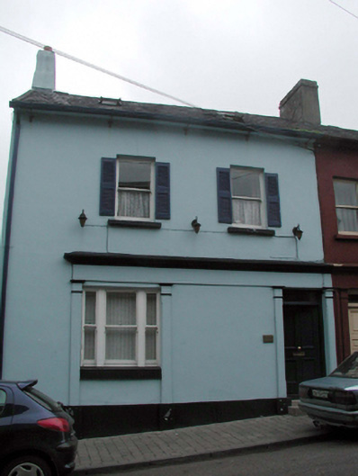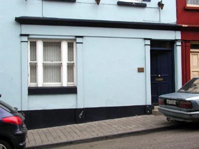 Attached two-bay two-storey house with dormer attic, c.1830. Extensively renovated, c.1880, with (shared) shopfront inserted to ground floor. Renovated, c.1980. Now in use as offices. Pitched (shared) slate roof with clay ridge tiles, rendered chimney stacks, replacement square rooflights, c.1980, rendered coping, and cast-iron rainwater goods on slightly overhanging eaves. Painted rendered walls. Square-headed window openings with stone sills. Replacement 1/1 timber sash windows, c.1880, with louvered timber external shutters, c.1980. Rendered (shared) shopfront, c.1880, to ground floor with pilasters, square-headed window opening in tripartite arrangement having 1/1 timber sash window and 1/1 sidelights, timber panelled door with overlight, and rendered fascia over having moulded cornice. Road fronted with concrete brick cobbled footpath to front.